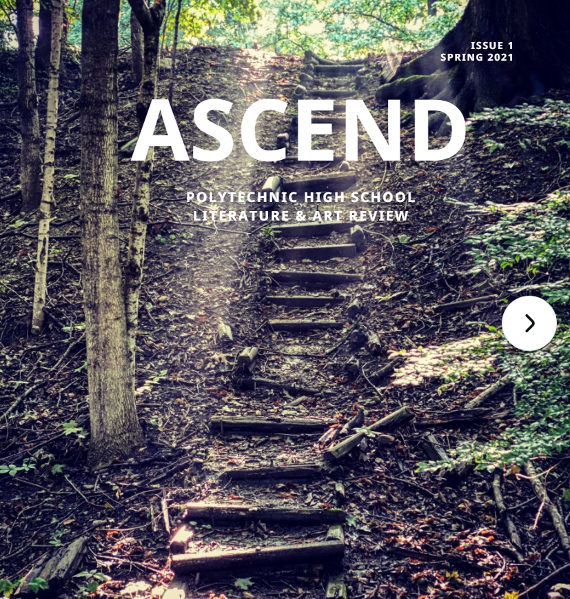The dedicated Poetry Club members of this Sun Valley LAUSD high school, met weekly on Zoom during the Pandemic, collaborating on Ascend, an idea that came together in 4-5 weeks. According to Hohmann they produced “the best writing we have seen in years.” This is high praise coming from the former Co-Facilitator of Tía Chucha’s Centro Cultural y Bookstore’s In The Words of Womyn, a former writer’s group that “striv[ed] to create and foster a safe space in which womym explor[ed] and develop[ed] their identity as writers,” and a published poet whose work can be found in the seminal L.Á. poetry anthology Coiled Serpent.