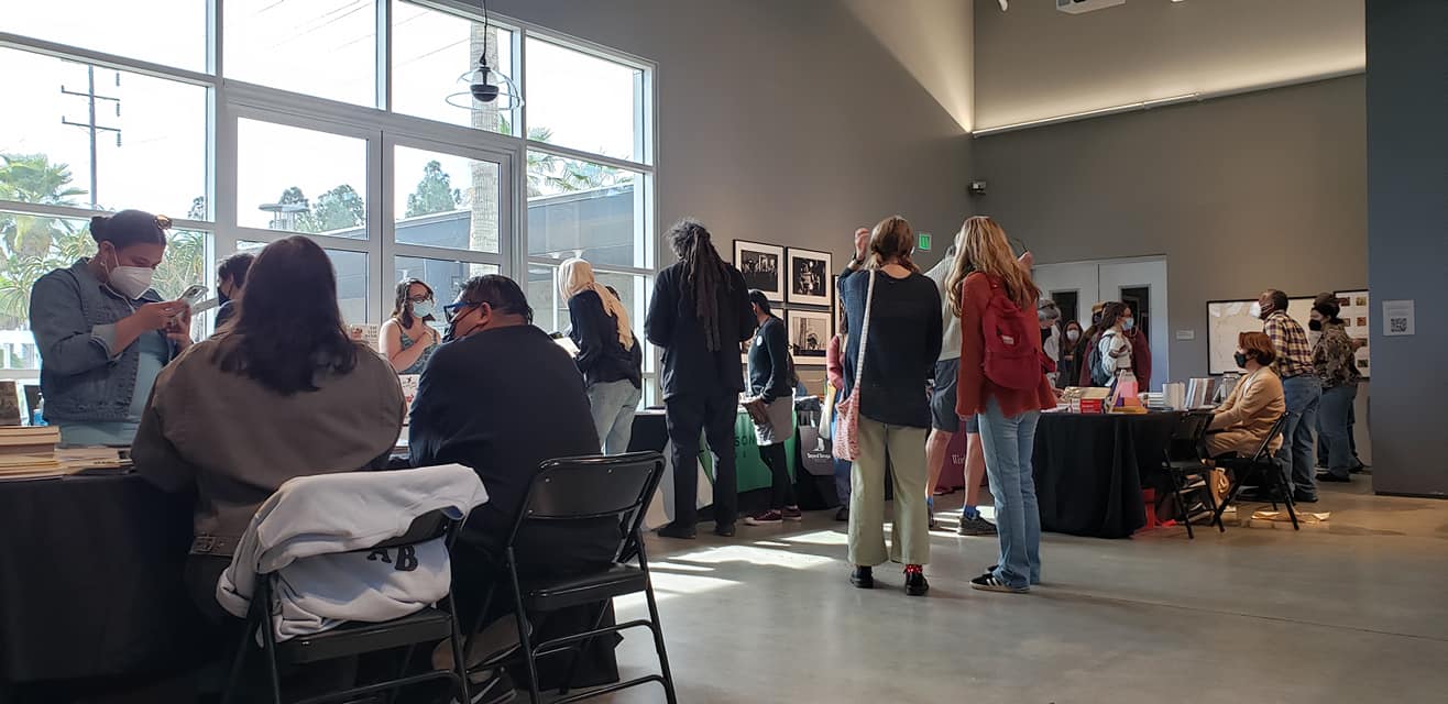 Inside the Wende Museum of the Cold War, tables ringed the walls of the back half of the exhibit space. Tablecloths were draped across their surface, some with the names of local presses—Golden Foothill Press, World Stage Press, Tía Chucha’s, Vagabond Books—were on display for sale. Authors and publishers in conversation. The public trickled in, created a large crowd, as the day progressed.