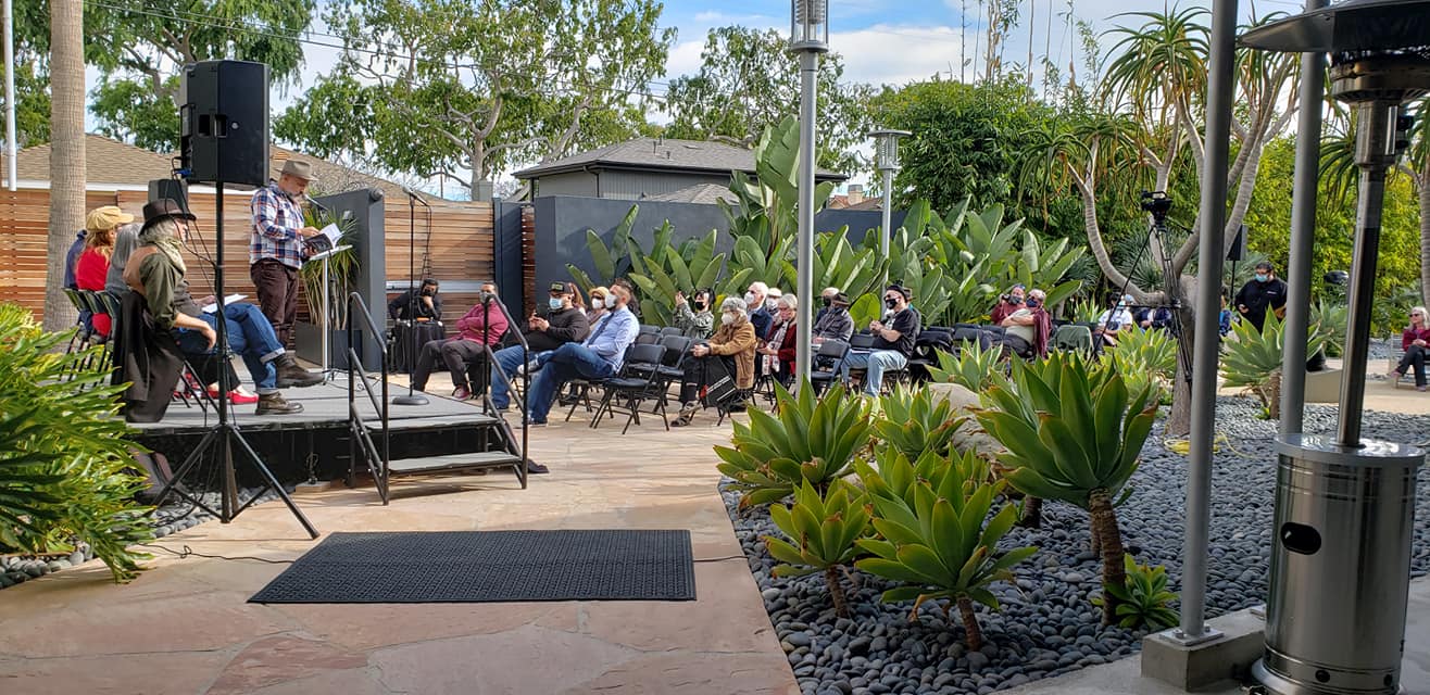 Throughout the festival there were other events: A poetry writing workshop presented by Beyond Baroque, taught by poet Luivette Resto centered on the genealogy and etymology of our names; a Virtual International Poetry Reading; and Kids’ Space with Kitty Felde, where Felde taped young readers for an upcoming Book Club For Kids podcast episode; among a few others. They took place outside, in the museum’s back courtyard, in the mild, February, Southern California air.