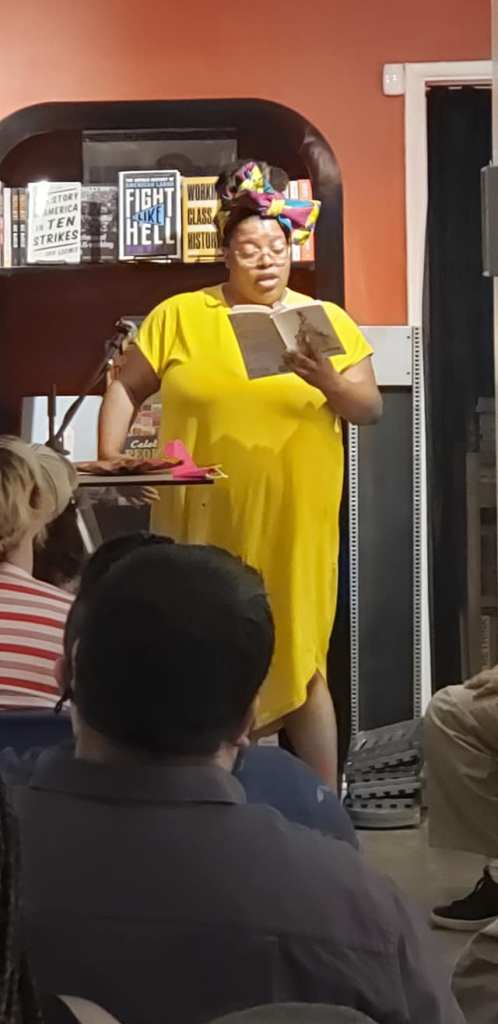 It was the final featured poet that put on the best performance of the evening. bridgette bianca read her poems with the anger, pride, humor and power to bring down the house. This poet and professor from South Central, her voice rang through the store as she read my favorite poem of hers, “a message from uppity negresses.”