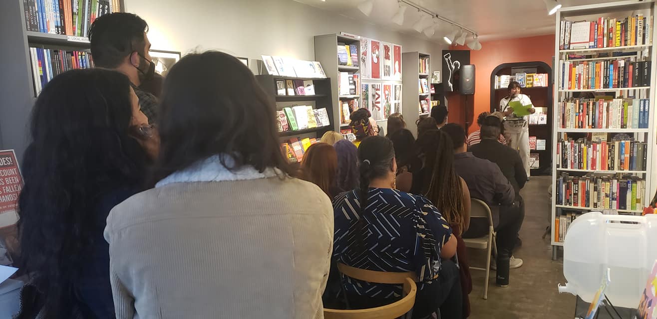 Inside, the skinny, shotgun style bookstore, was crowded. By my count, 22 audience members. The last time I had been to Page Against the Machine, was to host my reading featuring four DSTL Arts poets, the Wednesday before the pandemic shut down the country. It was great to be back. The reading was co-hosted by poets Nikolai Garcia and Mauricio Moreno.