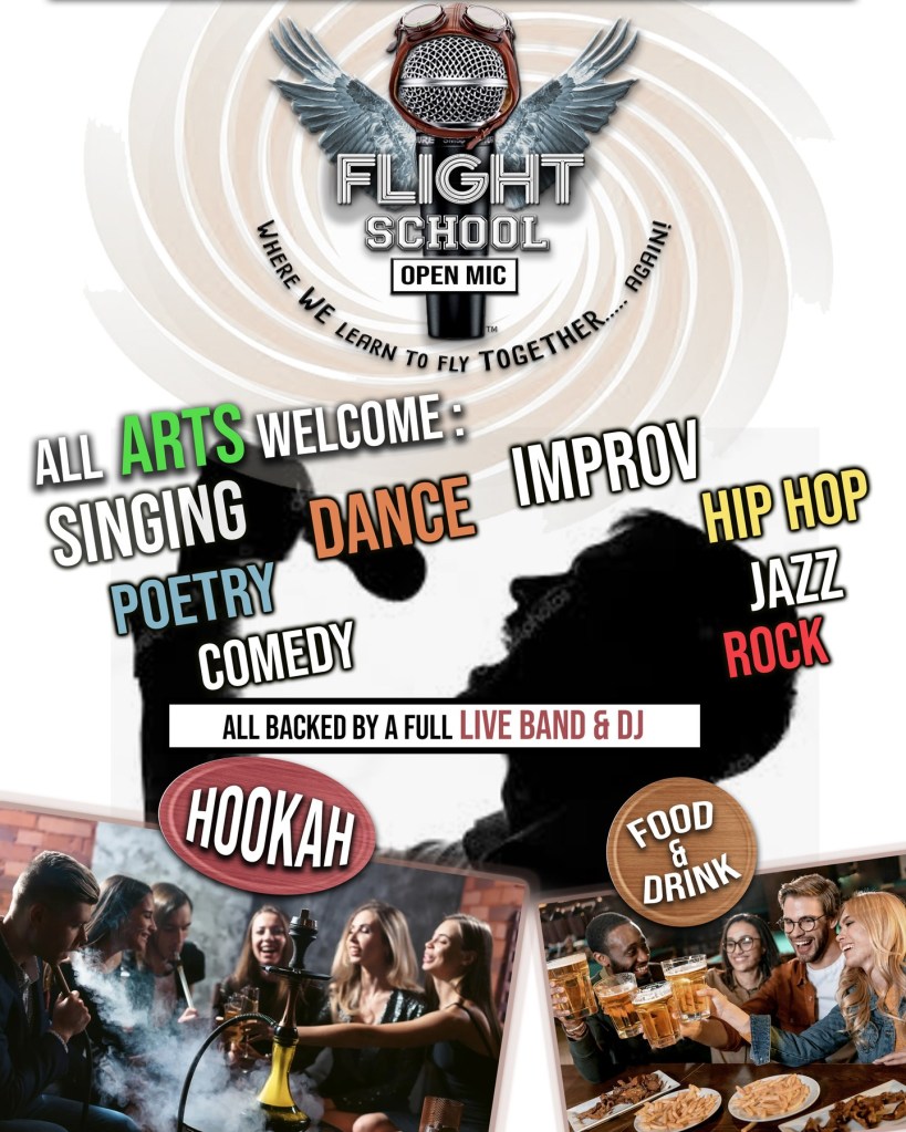 On May 25th, Flight School took to the sky again. O. Smith is back hosting this nocturnal gathering, but this time with DJ D-Major, Ventage and The Flight School Band. Now, it takes place every Wednesday, in Inglewood at The Playground Hookah Lounge from 8pm – 12am. All arts are welcome, from singing, Jazz and dance to improve, comedy and poetry.