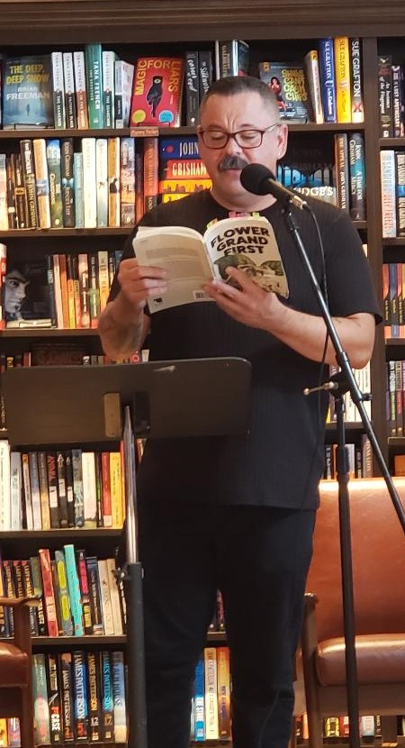Hernandez read from his debut collection Flower Grand First, as well. It’s a collection about place, specifically Hernandez’s hometown of Santa Ana. Primarily through the use of Santa Ana, and other places such as Jalisco and San Isidro, Mexico, Hernandez “moves through the complex roads of immigration, sexuality, and loss…honoring family and recording a personal history,” as the jacket copy states. When Hernandez read “Noviembre,” having recently lost my grandmother, my mother’s mom, I knew my mother, sitting next to me, would feel it deep in her bones. “My mother would not visit her mother’s grave this year. She would help her family adjust/to Mission Viejo for eight days, Santa Ana and beyond for the rest of her life.” The memory of a mother’s sacrifice for her family.