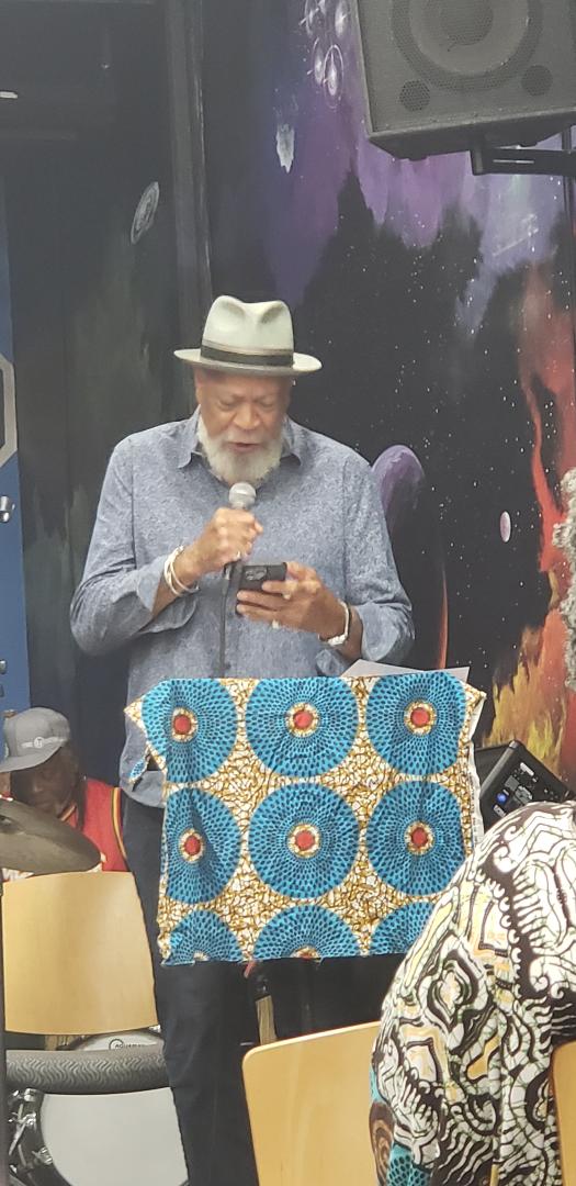 Wednesday, August 9, 2023. The World Stage in Leimert Park. The Anansi Writers Workshop had been taken over for the second week of Black August, “an annual commemoration and prison-based holiday to remember Black political prisoners, Black freedom struggles in the United States and beyond, and to highlight Black resistance against racial, colonial and imperialist oppression.” Poet Benin Lemus hosted the abbreviated workshop and the main event “A Literary Mixtape” was hosted by poet and musician Nailah Porter.