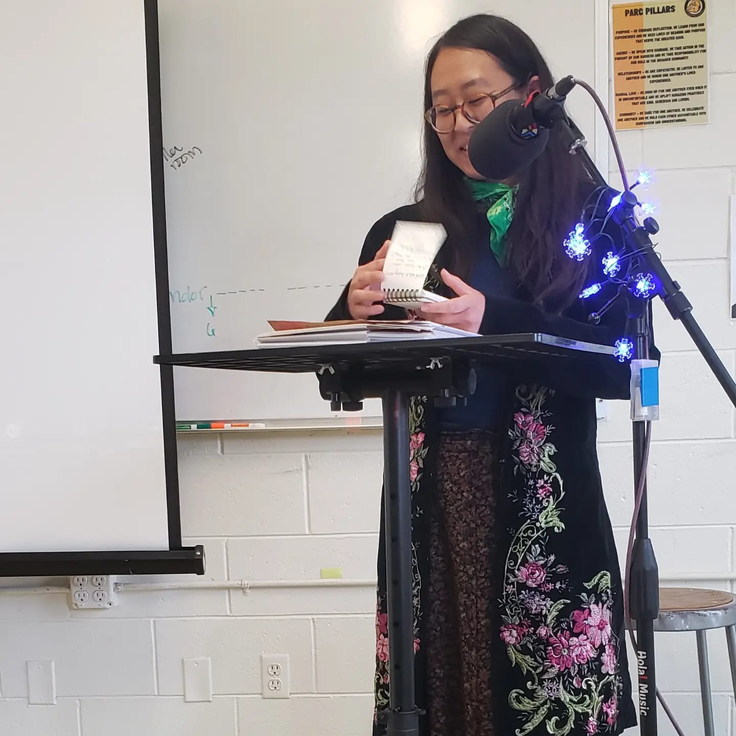 On both days, many other poets graced the lectern, standing in front of the whiteboard. Many who live in or have ties to NELA, from Angelina Sáenz and Jessica Cabellos y Campbell to Carla Sameth and Iris de Anda. One of Chuc’s “goals for the poetry festival is to mainly uplift the voices of Northeast L.[Á.] and surrounding areas.”