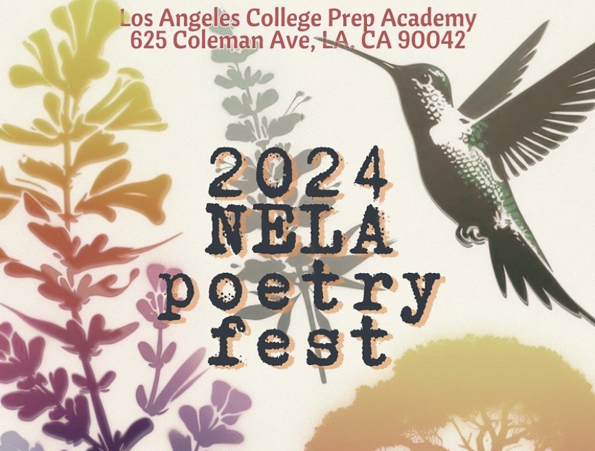 he First Annual Northeast Los Angeles Poetry Festival (NELA Poetry Festival) took place on April 13 and 14 at Los Angeles College Prep Academy (LACPA). A cold, rainy day, sky gray, the charter high school is tucked away in Monterey Hills. The views out of classroom windows looked out over quiet residential streets, scattered palm trees, jacarandas yet to bloom, stretching over Highland Park, Mt. Washington and beyond, the drone of vehicles rising up from the hidden 110 Freeway.