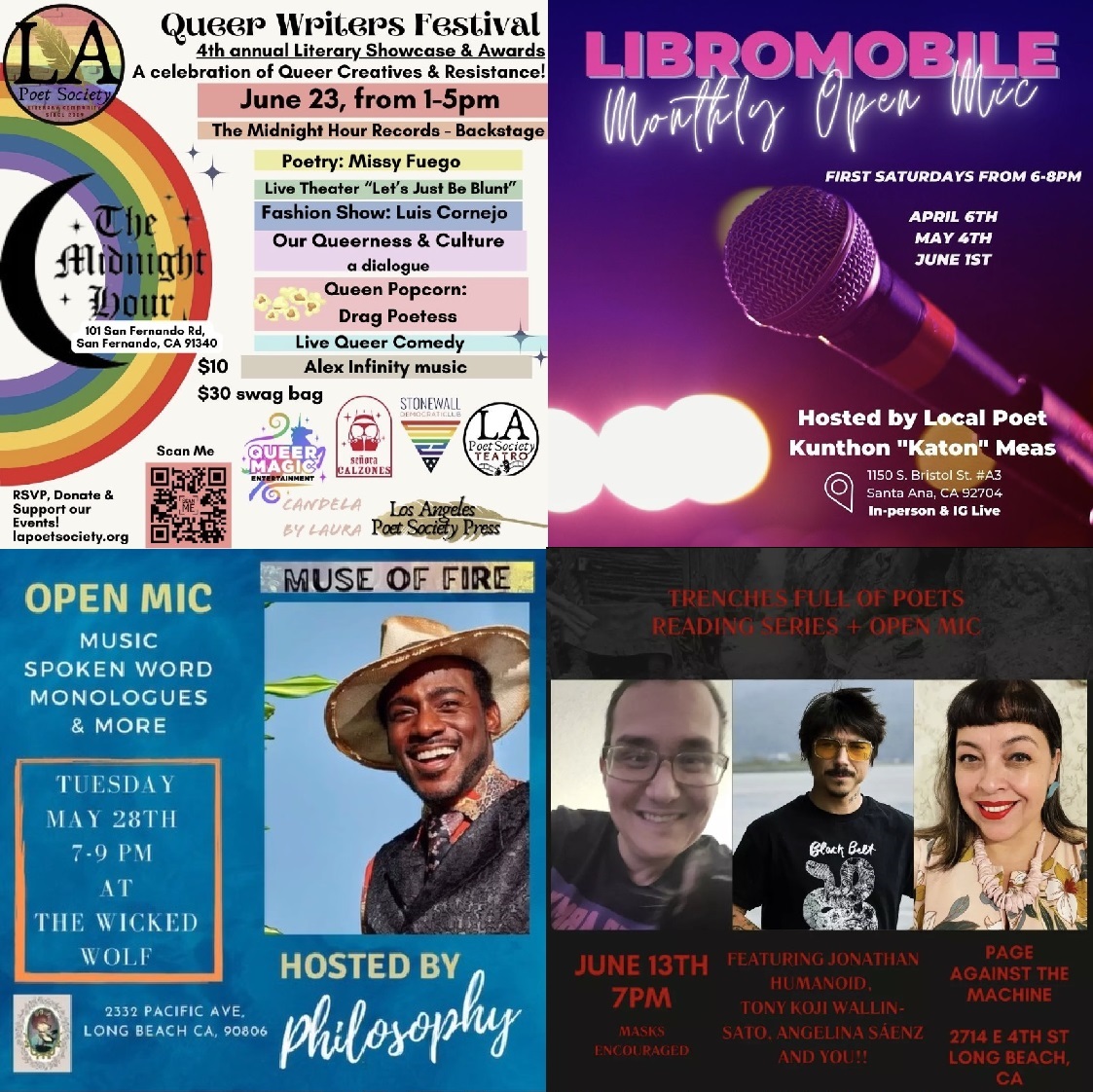 Coimen: I am lucky to have come to L.Á. at this stage of my life, free of personal entanglements. I am at liberty to enjoy what our literary community has to offer. At the beginning, I felt like a kid in a candy store, with so many options available. It was difficult to decide what to do. I learned early on to move around the different geographies to hear the diversity of voices around town. I have gone to the Valley and to San Pedro, to Malibu and to Highland Park, to Leimert Park, to Little Tokyo, to Venice. And wherever I go to an open mic, or a feature, or a book release, there is always the opportunity to hear something captivating, engaging, transforming. I love to bathe in the luxury of our diversity.