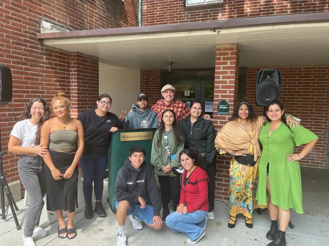 In the midst of painting the wall we held our twice a month open mic at Woodbury, Verse Come, Verse Serve. We started the series in January of 2019 holding it every two weeks, usually on Tuesdays in the school’s outdoor patio. In the fall of 2023 though we held it in the center of the quad next to the Woodbury Wall of Love under a massive jacaranda tree.