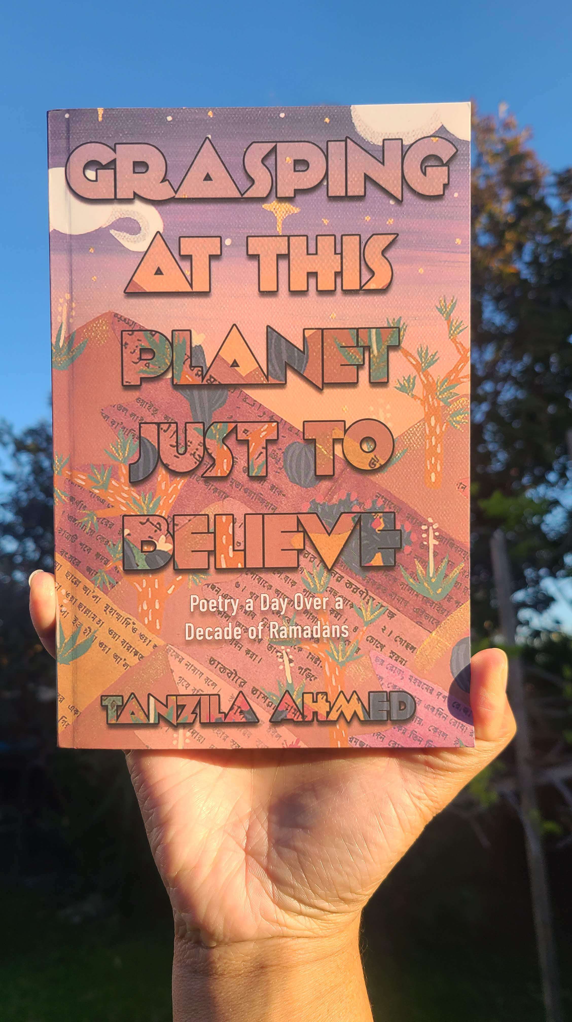 In her latest collection of poetry, Grasping at this Planet Just to Believe: Poetry a Day Over a Decade of Ramadans (Write Large Press, 2024), Tanzila Ahmed weaves a decade-long tapestry of introspection, resilience, and building community. This poetry collection stands not only as a testament to her healing and to orienting her faith after a deep loss but also as a chronicle of a vibrant online community she nurtured—a sanctuary for Muslims, Muslimish, and allies to gather and write during the holy month of Ramadan.