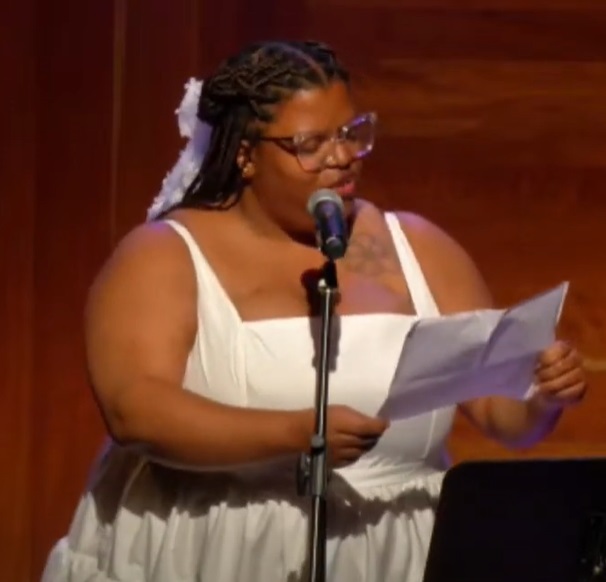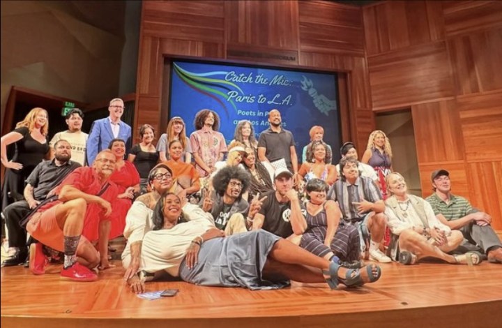 However, the Los Ángeles portion of the finale, livestreamed and dubbed “Catch the Mic: Paris to L.Á.,” featured 28 L.Á. poets who performed in the Mark Taper Auditorium. Poets such as Bridgette Bianca, Sean Hill, Matthew Cuban Hernandez, Christian Perfas, Linda Ravenswood, Mimi Tempestt, Jimmy Vega, Brian Sonia-Wallace and Pam Ward. Plus, the M.C. and Beyond Baroque board president, Shonda Buchanan.