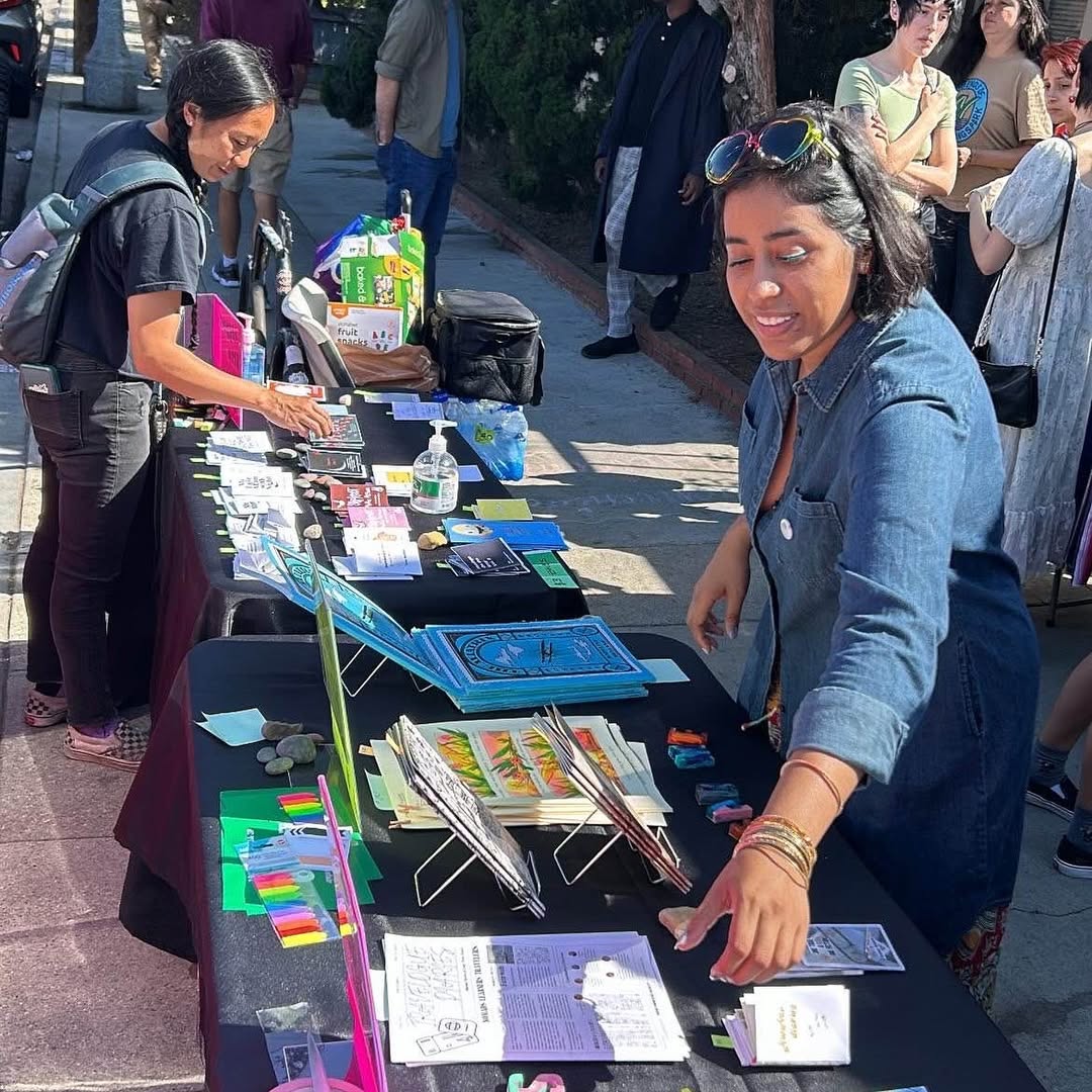 At the fair, they tap into the Long Beach community by staffing it with volunteers and help attendees to buy the zines they love by using a temporary self-serve Shopify set up. Once they inventory everything afterward, they ensure they pay out 100% of the proceeds to each zine maker.