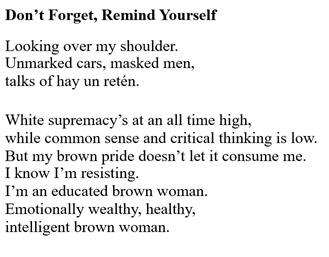 Cherice: Pieces are chosen for the anthology based on a common theme. In this case, the theme focuses on injustices taking place in immigrant communities, giving voice to the voiceless, and speaking out regarding the state of the world. Qualities such as rhythm, form, impact, and how a piece fits into the overall arc of the theme are part of the process of putting the anthology together.