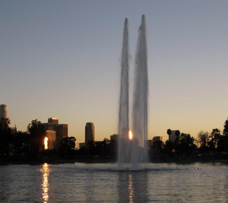 On this sunny Friday, unseasonably gorgeous even for Los Angeles, I headed to Echo Park Lake to visit the new Floating Library. You don’t need a card to borrow books from the Floating Library, but you do have to reach it.