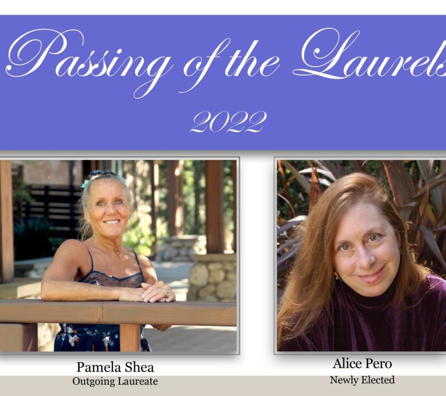 Pamela Shea Passes the Laurels to ST 10th Poet Laureate Alice Pero on April 9, 2022